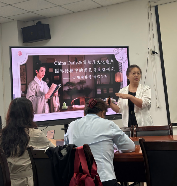 作为中国对外传播旗舰媒体,China Daily凭借其全球覆盖网络与多语种传播能力,成为非遗国际化的核心载体。讲座中,刘教授聚焦China Daily在非遗国际传播中的核心作用与创新策略,围绕非遗国际传播的当代价值、媒体影响力及实践挑战展开探讨,为外语教学与文化传播相融合提供了新思路。