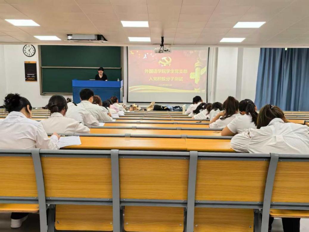 为持续加强入党积极分子教育管理,把好党员发展质量关,夯实学生理论素养,2025年9月24日,外国语学院学生党支部在书知楼1310教室组织开展了2025-2026学年秋季学期入党积极分子理论测试。