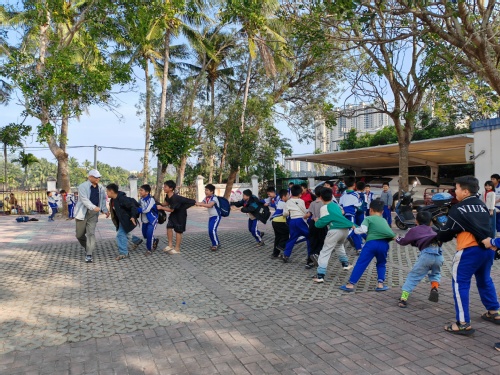 随后,教师们走进不同班级,与孩子们进行了生动有趣的英语互动,通过观察与交流,切实体察了乡村学生的学情特点与学习热情。教师们还走出教室,在校园内与孩子们展开了充满活力的英语游戏活动,用国际化的语言和教学方式,为孩子们带来了欢乐的学习体验。