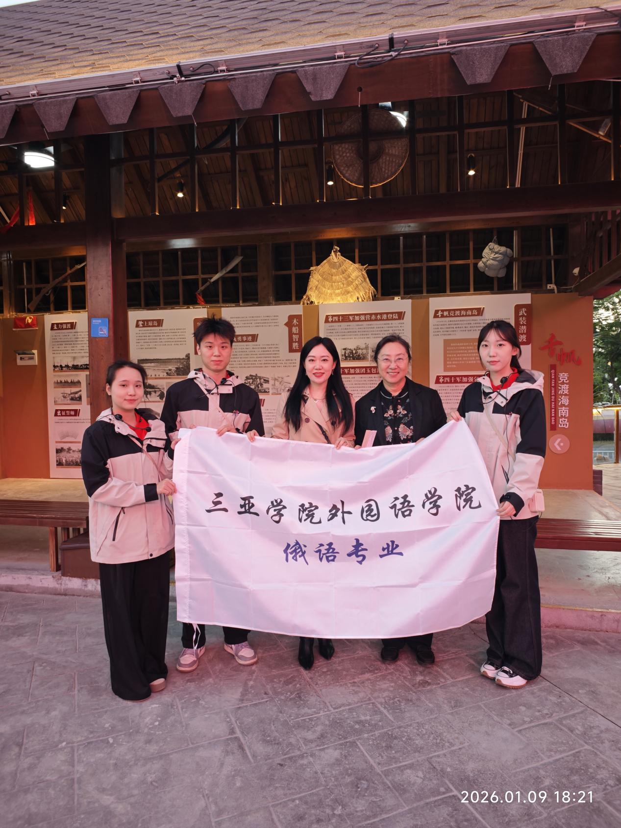 为深入推进产教融合,提升专业实践育人成效,强化红色文化在人才培养中的浸润作用,2026年1月9日下午,三亚学院外国语学院组织新进研究生及教师代表,前往三亚红色娘子军主题景区开展专题研学,并对在该景区实习的三名俄语专业本科生进行了实地回访与教学交流。
