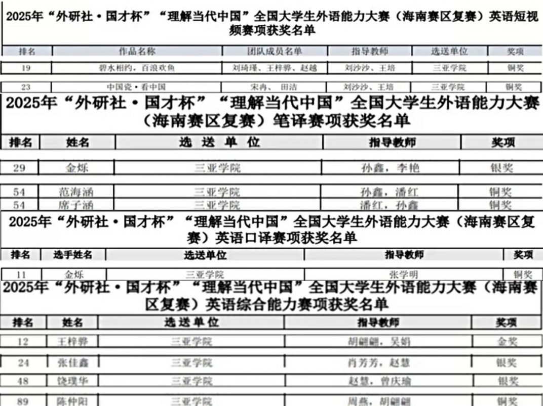 合作网络持续拓展。俄语专业新增三亚红色娘子军演艺公园、三亚大小洞天发展有限公司2家实习基地并完成授牌;英语及翻译专业与译国译民、迈度等企业深化实习实践合作。公共外语教学部与三亚市吉阳区委组织部合作开展《2025年三亚市吉阳区公务员英语能力提升网络专题培训班》。