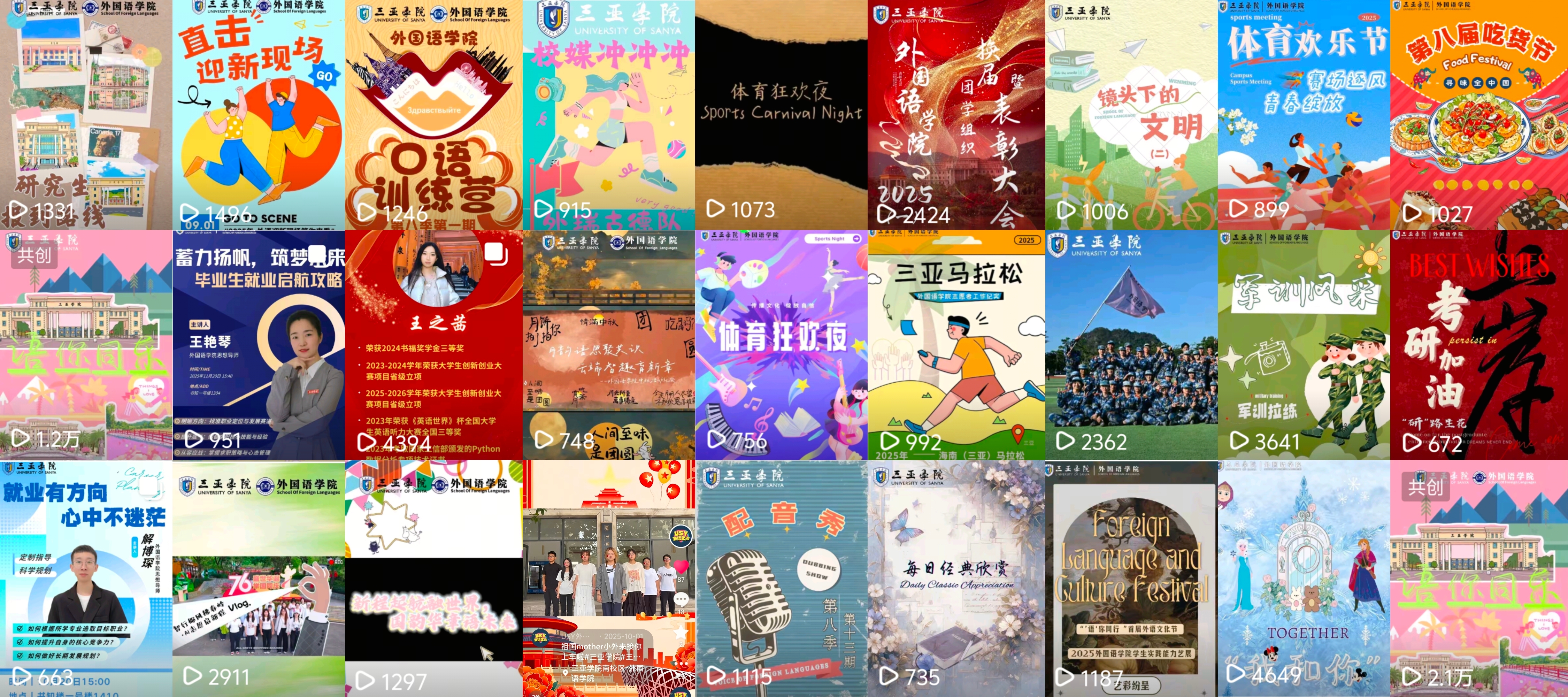 抖音制作部围绕 “传语言魅力,展外院风采” 核心目标,以创意短视频打造外院宣传新名片。重点打造《口语训练营》《配音秀》《每日经典》《“语” 你同乐》四大特色系列,创作涵盖学术科研、校园活动、学生生活、节日文化的优质视频内容,全年发布作品 610 条,实现点赞量破 1.2 万、总播放量超 71 万的传播佳绩,粉丝涨幅达 75%,成功实现从 “校园账号” 到 “区域性外语传播平台” 的初步跨越。