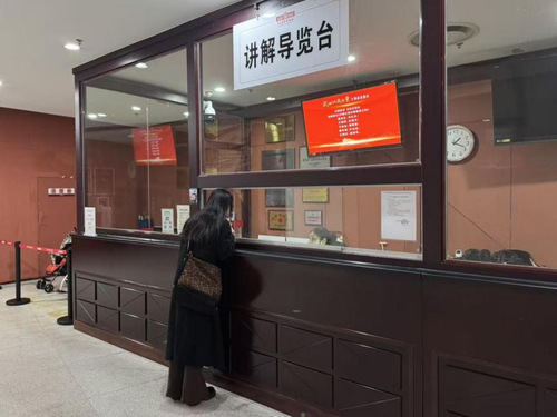 参观尾声,刘佳音同学前往讲解导览台,与博物院工作人员围绕外语服务与历史译介展开深入交流。工作人员介绍,作为承载革命记忆、传播历史文化的重要窗口,辛亥革命博物院每年接待大量外国游客,外语讲解与翻译服务是连接中外游客、传递革命精神的关键纽带。目前,展馆已开通英语AI语音导览,可满足基础讲解需求,但在传递历史情感、回应深度文化问询、精准传译复杂历史术语等方面,仍需具备深厚历史素养与跨文化沟通能力的专业翻译人才支撑。双方就AI导览与人工翻译的优势互补、专职外语讲解员与翻译志愿者的培养路径等话题展开探讨。此次交流让刘佳音直观感受到市场对高层次翻译人才的需求导向,也深化了她对“技术赋能与专业深耕并行”的职业认知,为后续专业学习与职业发展明确了方向。