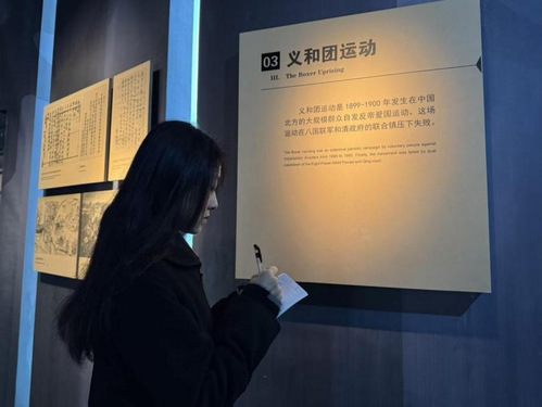 此次实践打破课堂与实景的壁垒,将翻译专业素养的锤炼与中国近代史的传播紧密结合,既是学院英语系培养“理论+实践”模式的生动践行,也是青年翻译学习者以专业之力传承革命精神、传播中国故事的具体体现。展馆内,刘佳音同学驻足于每一块展板前,聚焦中英双语对照文献与说明文字,以翻译学习者的专业敏感度,细致研读历史表述的译介细节。遇到兼具时代特色与文化内涵的历史负载词,她即刻记录、反复思索,在原文与译文的对照中,探寻准确传递历史原意、精准诠释文化内涵、贴合外文表达习惯的译介路径。