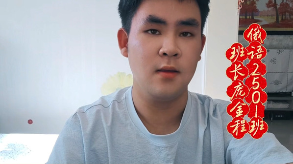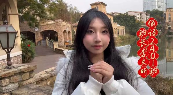 大家好,我是俄语2501班的班长庞金程。金蛇辞旧岁,骏马迎新春。回首过去的一年里,我们在外国语学院这个大家庭并肩奋斗,风雨同舟。感谢我们老师们的悉心教导,让我们在知识的草原上驰骋。感谢同学们的相互扶持,让我们的班级里充满温暖。2026年马年已至,愿我们敬爱的老师身体健康,工作顺利,桃李满天下,春晖遍四方。愿全体同学以梦为马,不负韶华,学业上一马当先,生活上龙马精神。在未来的道路上策马扬鞭,奔向更广阔的星辰大海。祝大家马年大吉,万事胜意。