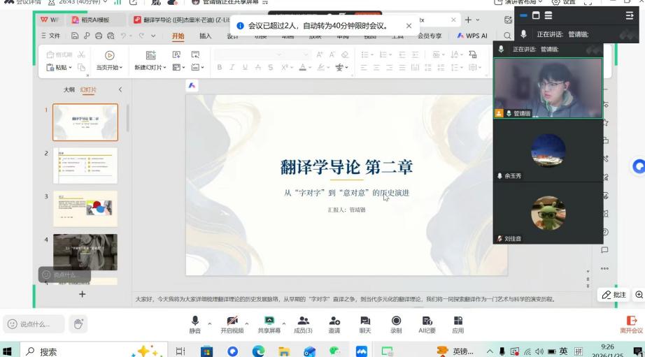 图三:管靖锴在余玉秀导师指导下开展翻译实践分享