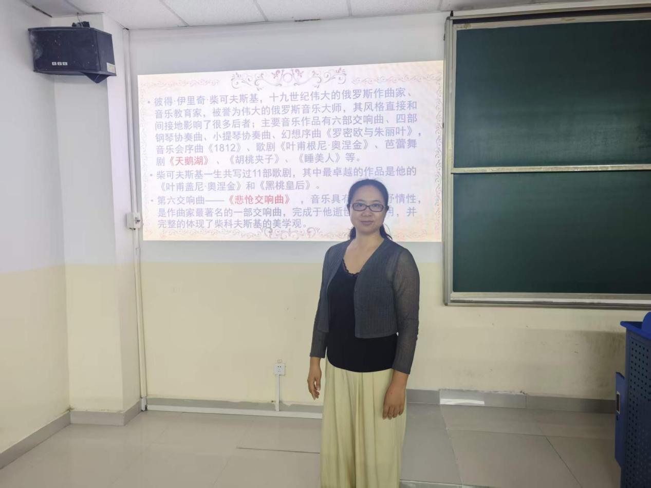 讲座伊始,书知楼教室内回荡起柴可夫斯基《第六交响曲“悲怆”》那深沉而动人的第一乐章旋律。董老师以这段经典音乐片段为引,缓缓拉开讲座的序幕。她指出,“悲怆”不仅是这部交响曲的灵魂底色,更是贯穿柴可夫斯基整个人生的核心基调。通过音乐与命运的互文,董老师迅速点燃了同学们对作曲家生平与创作的好奇心与探索欲。
